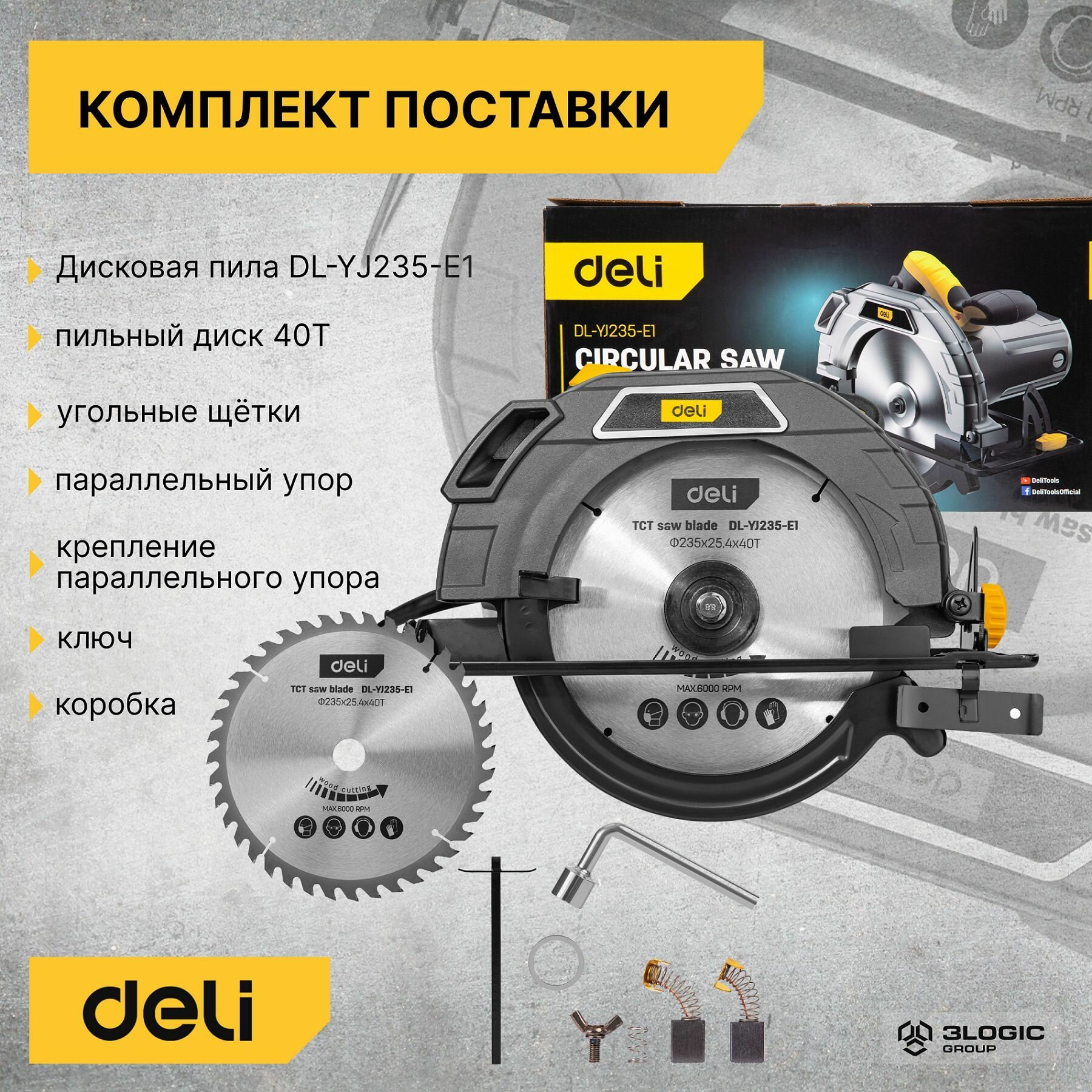 Купить DELI Дисковая (циркулярная) пила DL-YJ235-E1 (2200Вт, 4200об/мин, ф235мм, диск в комплекте) 103012