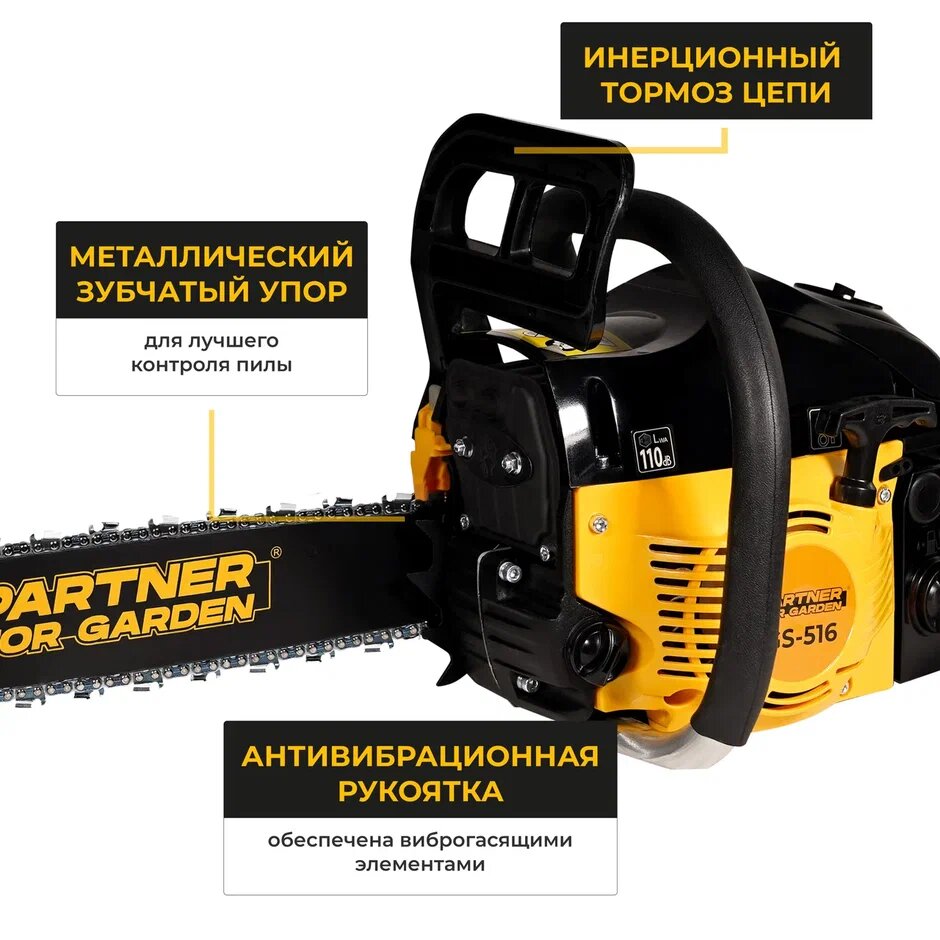 Бензопила цепная Partner for Garden GS 516 бензиновая ( 3,5 л.с, мощность 2,4 кВт, длина шины 16" - 40 см )