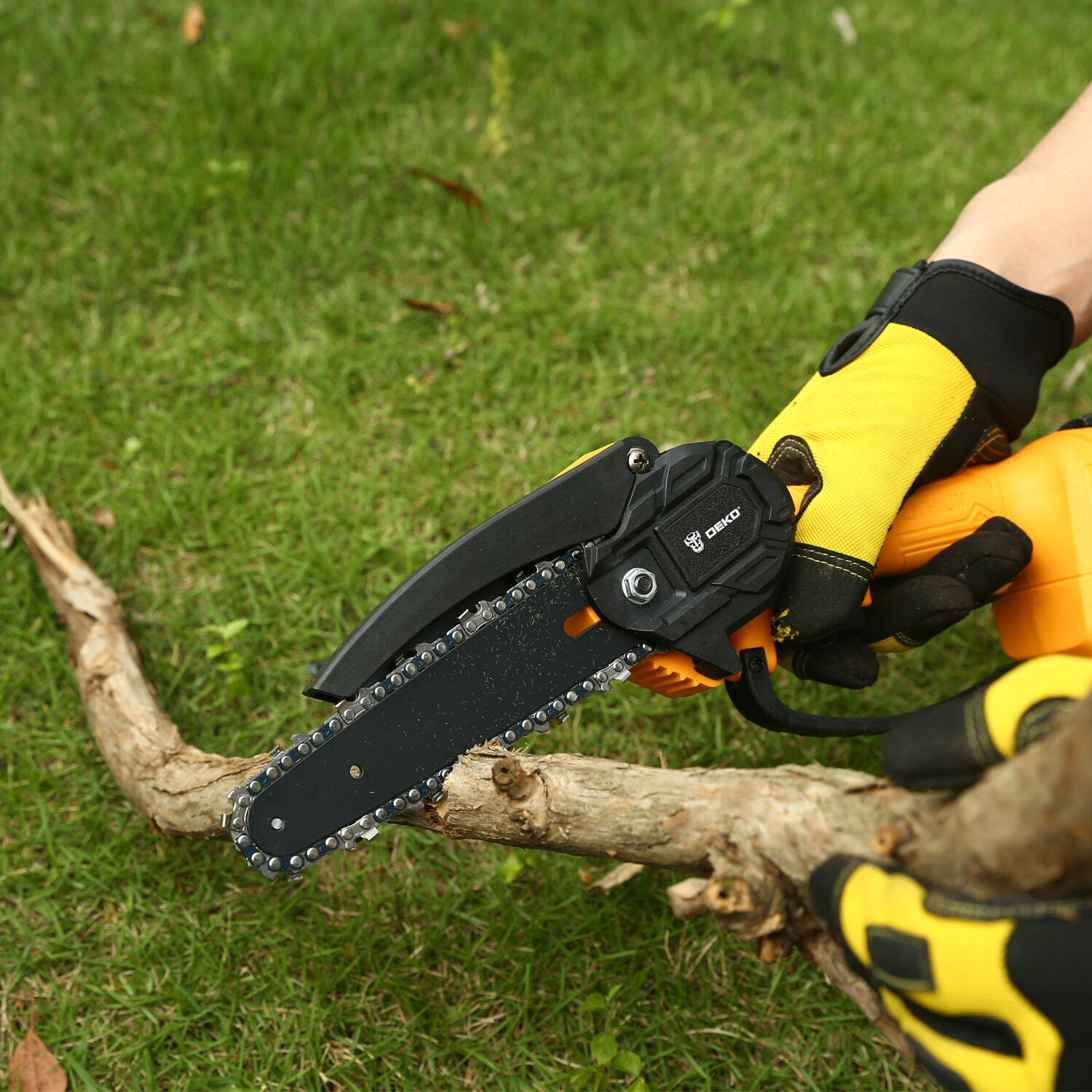 Цепная пила DEKO DKCHS 20-6, аккумуляторная, 20В, 2Ач, с двумя аккумуляторами [063-4309]