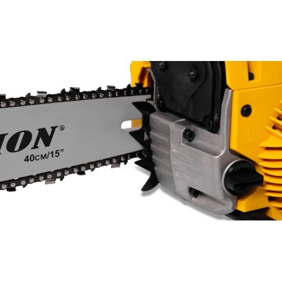 | Особенности | Инерционный тормоз цепи и уловитель цепи - безопасность оператора; Блокировка курка газа - защита от повторного пуска; Воздушное охлаждение двигателя; Облегченный доступ к воздушному фильтру; Регулируемая автоматическая система подачи масла на цепь и шину; Эргономичная рукоятка Champion 256-18"; Топливо: смесь бензина АИ-92 и масла для двухтактных двигателей в соотношении 50:1. |