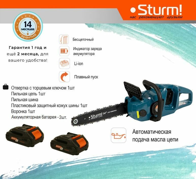 Аккумуляторная цепная пила Sturm CSC1808BL