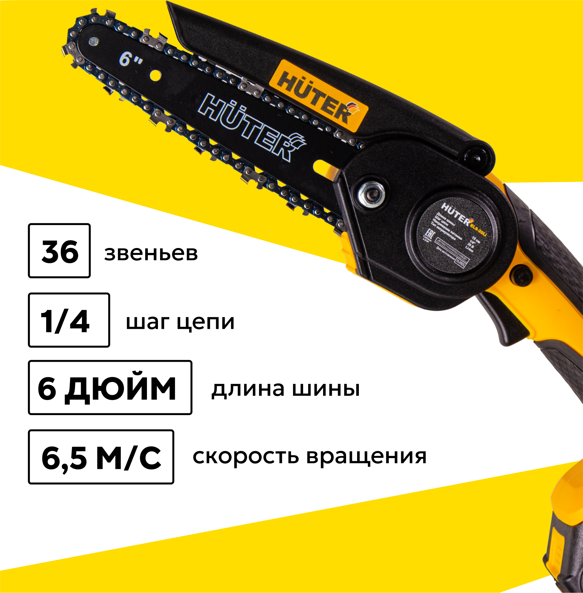 Электропила Huter ELS-36/2, Li-ion, 15см, шаг цепи 3/8", тормоз двигателя