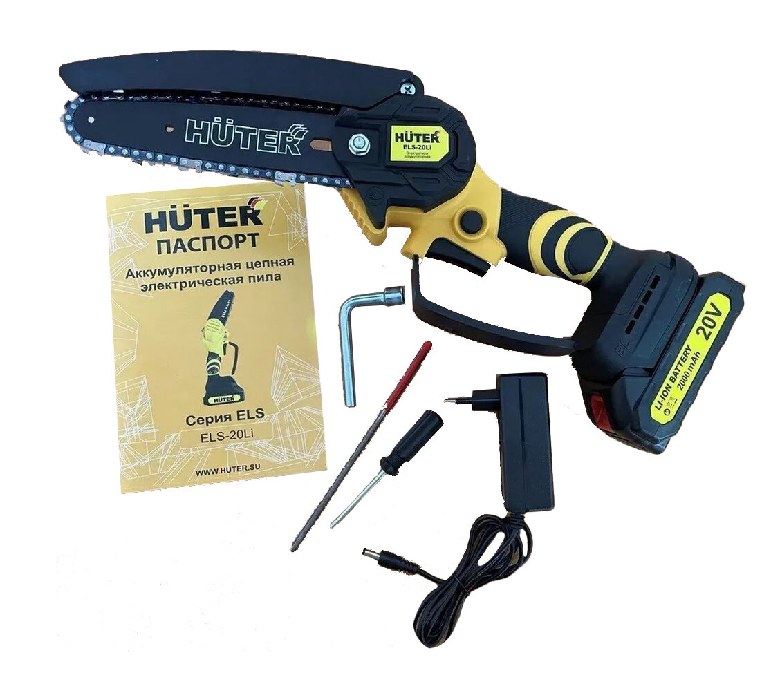 Аккумуляторная цепная пила Huter ELS-20Li, шина 15 см, 1 акб в комплекте