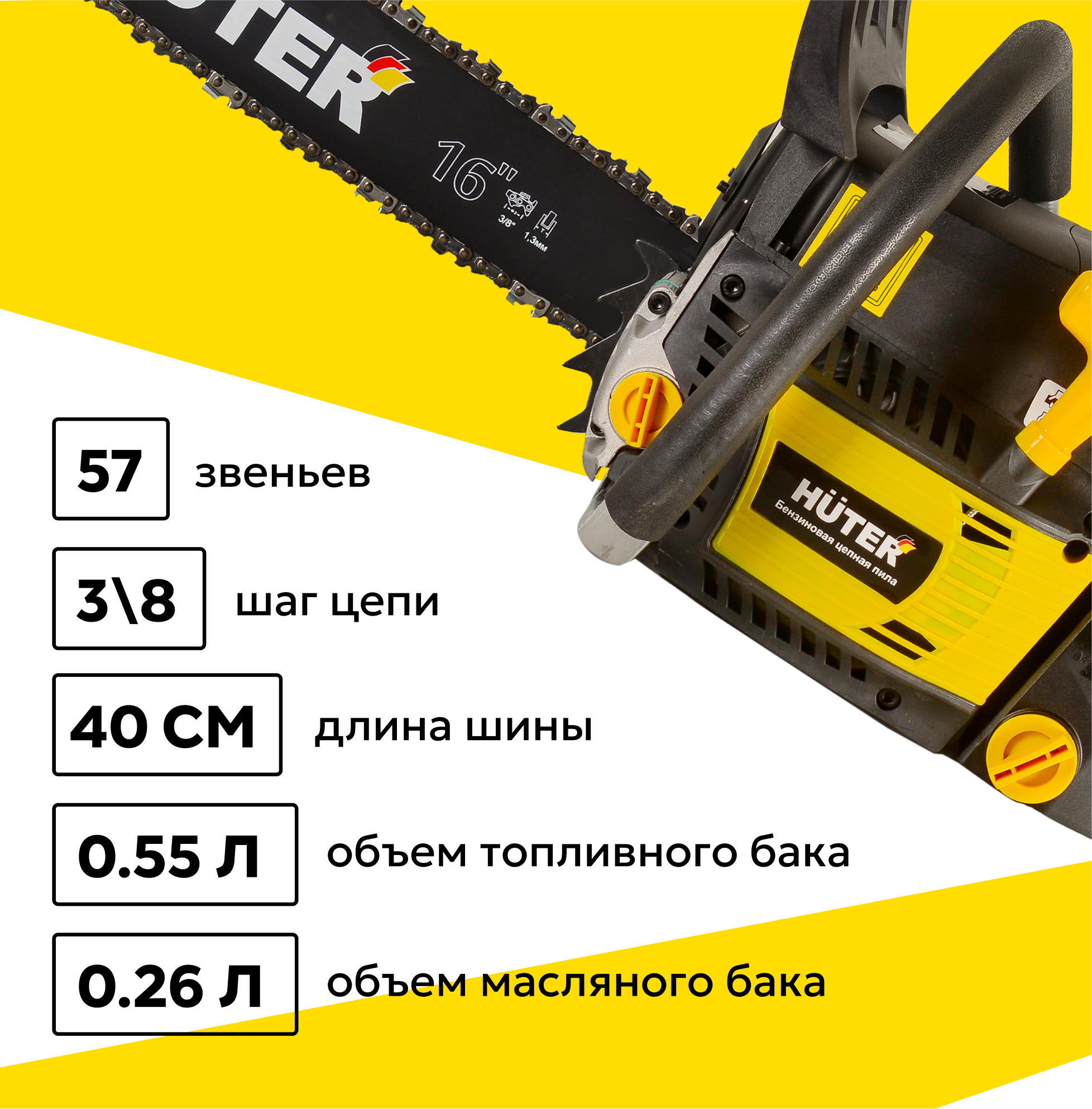 Бензопила BS-52M Huter (52см3, 3,8лс, 18", 1,5мм*72зв, шаг 0,325")