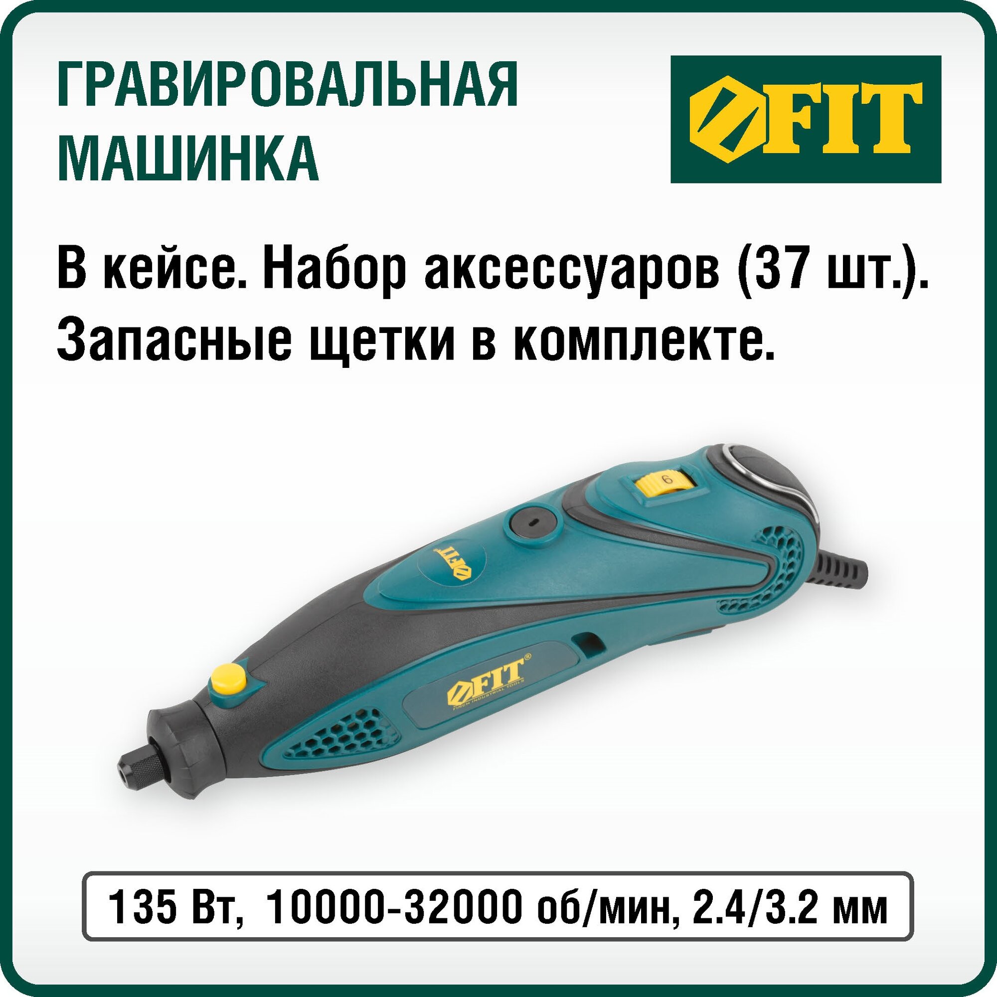 Гравировальная машина 130 Вт; 10000-35000 об/мин; 2,4/3,2 мм; БС щеток; набор насадок 210 шт.; кейс Fit