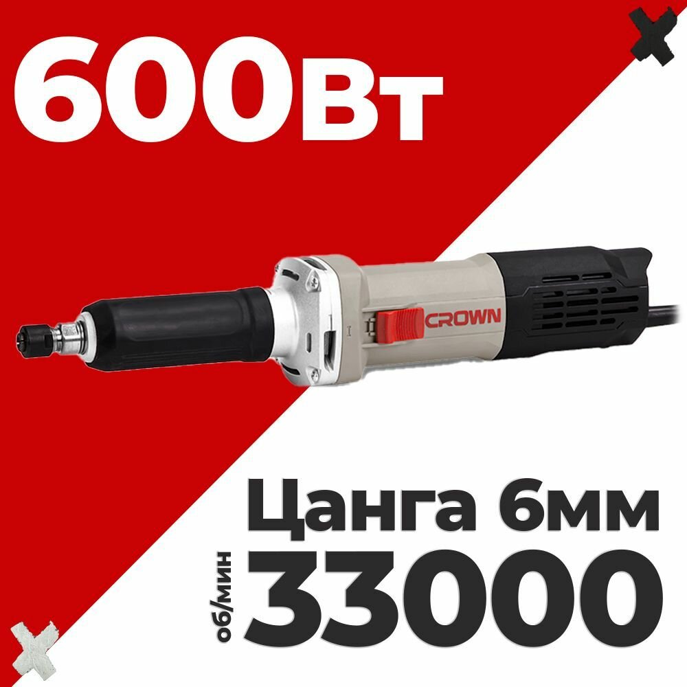 Прямая шлифовальная машина CROWN CT13577, 600Вт, 33000 об/мин, цанга 6мм,