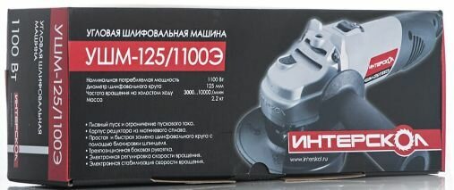 Купить Углошлифовальная машина, болгарка ИНТЕРСКОЛ УШМ-125/1100Э (125мм, 1100Вт, 12000об/мин, плавный пуск, 2,2кг, коробка)
