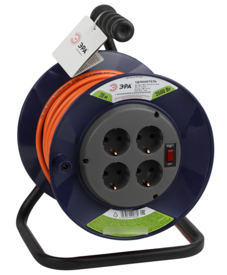 СохранитьУдлинитель силовой на катушке ЭРА RPx-4es-3x1.5-20m с заземлением, провод ПВС 3х1.5мм2, 4 розетки, 20м, Б0046849 / электрика интересное: