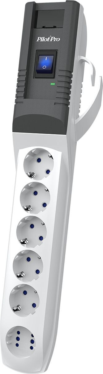 Сетевой фильтр Pilot Pro 3 метра, 6 розеток (5 евро + 1 GP ), защитные шторки, белый (177)