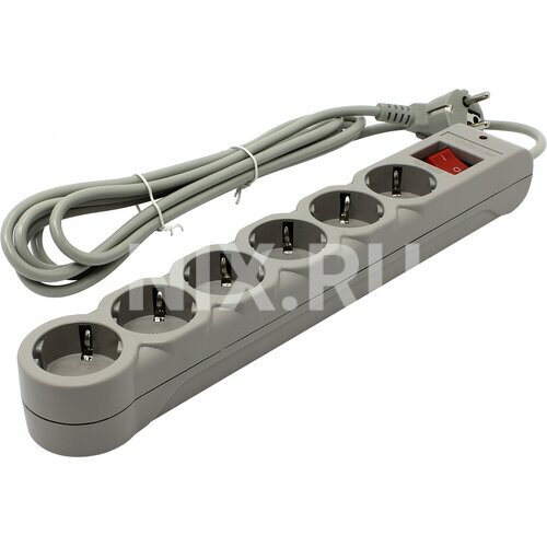 Сетевой фильтр Defender DFS 601 (99406), 6 розеток, с/з, 10А / 2200 Вт серый 1.8 м 330 мм 51 мм 41 мм
