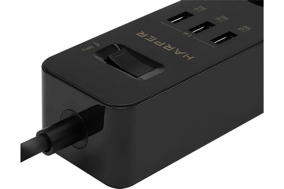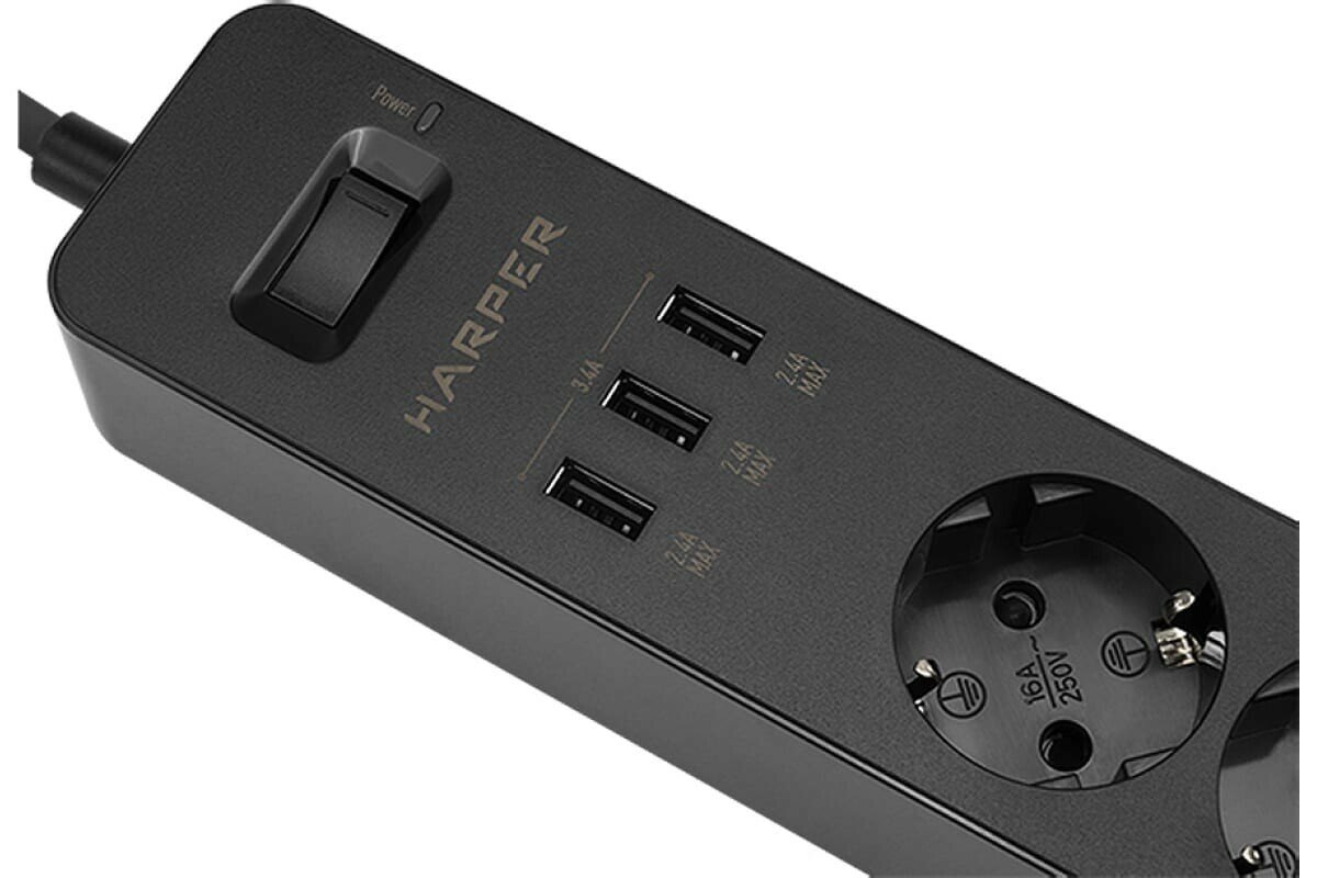 Сетевой фильтр (удлинитель) с USB зарядкой HARPER UCH-325, черный