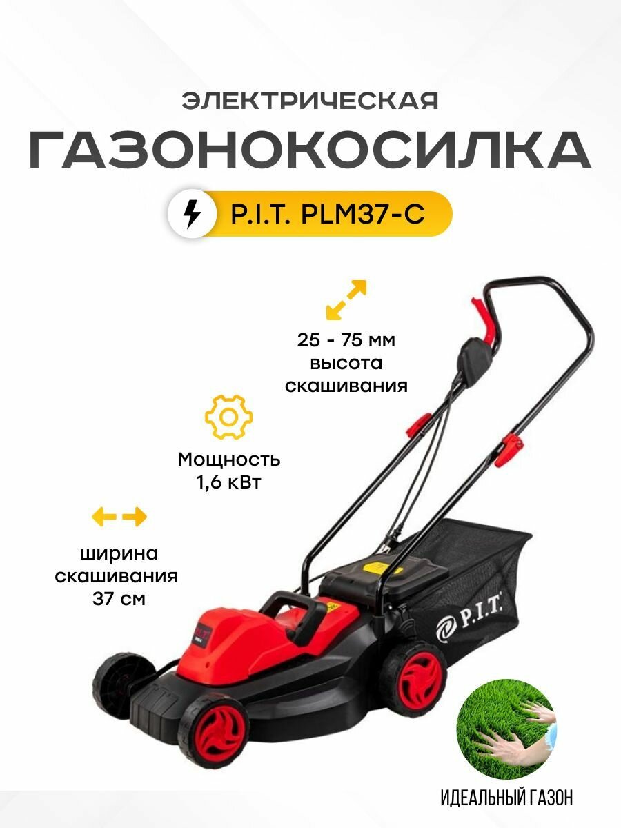 Электрическая газонокосилка P.I.T. PLM37-C, 1600 Вт, 37 см