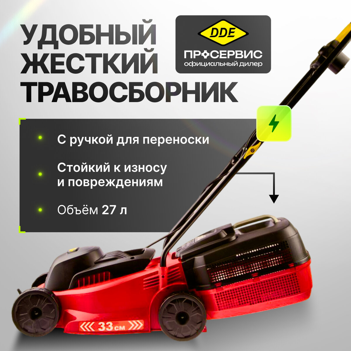 Газонокосилка эл. DDE LME 3313, 1.3кВт ширина 33см высота 25-65мм травосборник 35л 8,9кг (791-714), шт