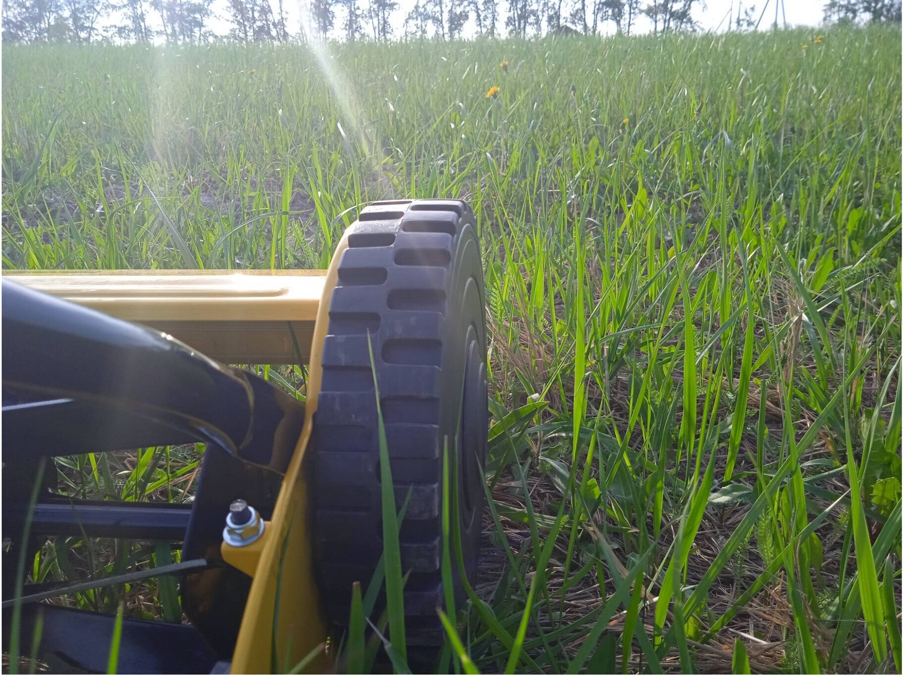 | Минусы: | Высокую траву, нужно на несколько раз прокатывать |