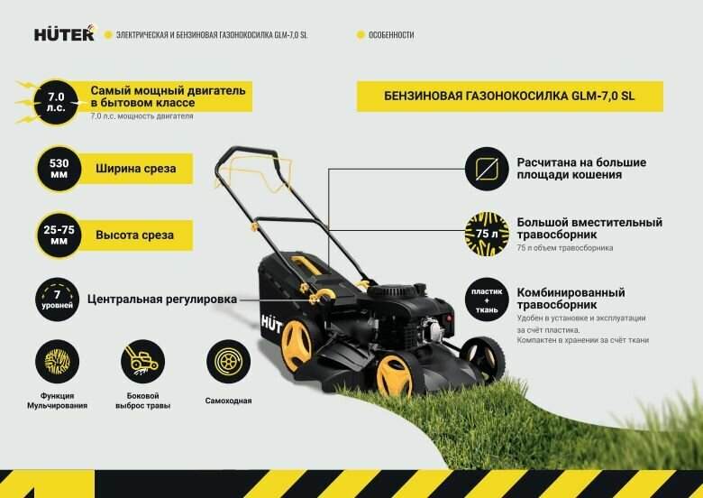 СохранитьГазонокосилка бензиновая Huter GLM-7.0 SL интересное: