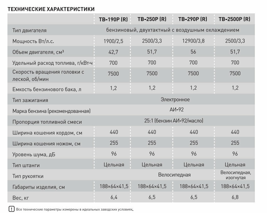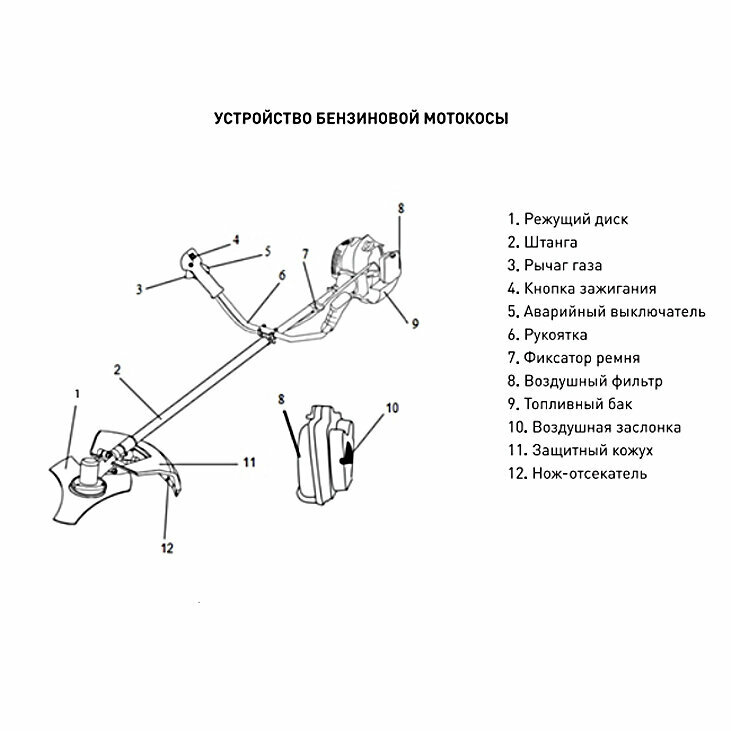 | Подробная комплектация | - Бензиновая мотокоса – 1 шт.; - Триммерная катушка с леской – 1 шт.; - Нож 3-х лопастной – 1 шт.; - Наплечный ремень – 1 шт.; - Ёмкость для смешивания – 1 шт.; - Монтажный набор – 1 шт.; - Руководство по эксплуатации – 1 шт. |