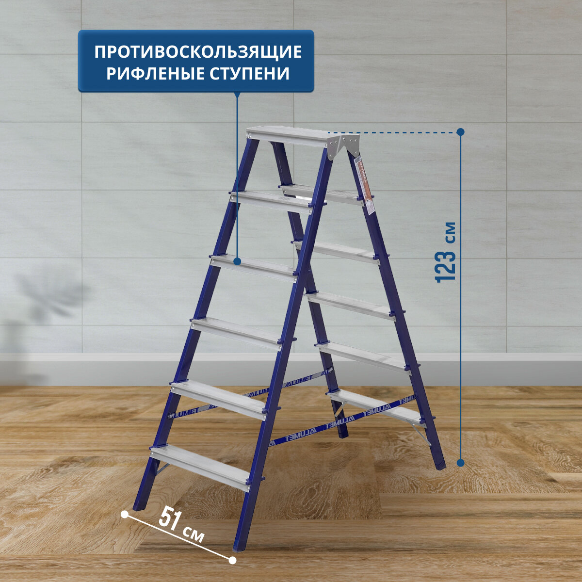 Стремянка двухсторонняя Alumet MD8206, стальная, 2 x 6 ступеней, 1,37 м