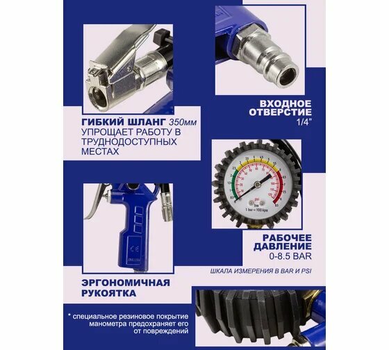 СохранитьForsage Пистолет для подкачки шин с манометром и шлангом (0-8.5 Bar), F-STG-24(50354) интересное: