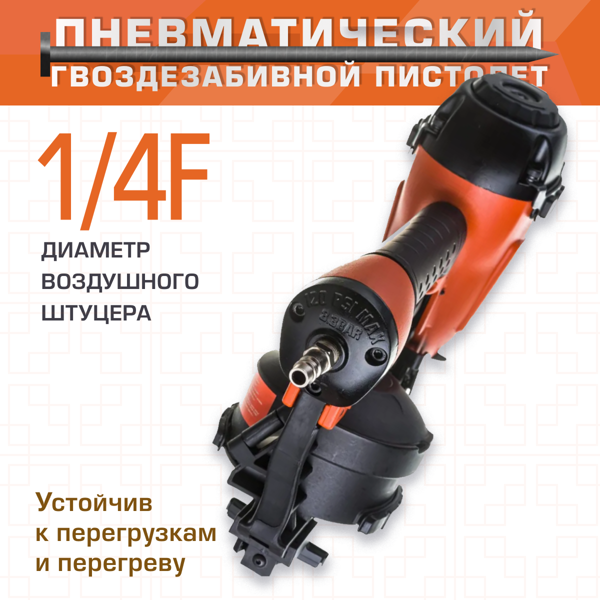 Пневматический гвоздезабивной пистолет барабанный нейлер AERO C45, Foxweld