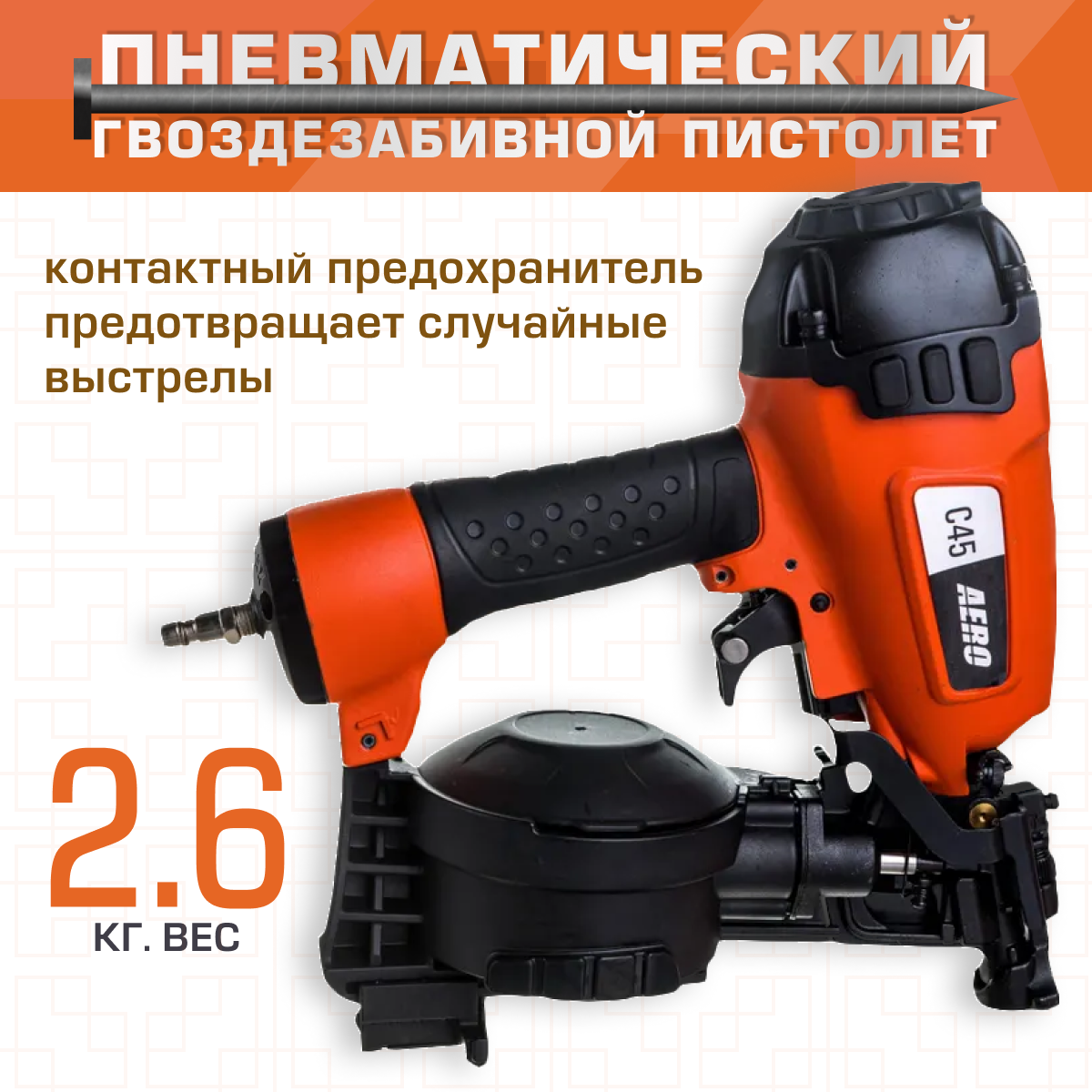 Пневматический гвоздезабивной пистолет барабанный нейлер AERO C45