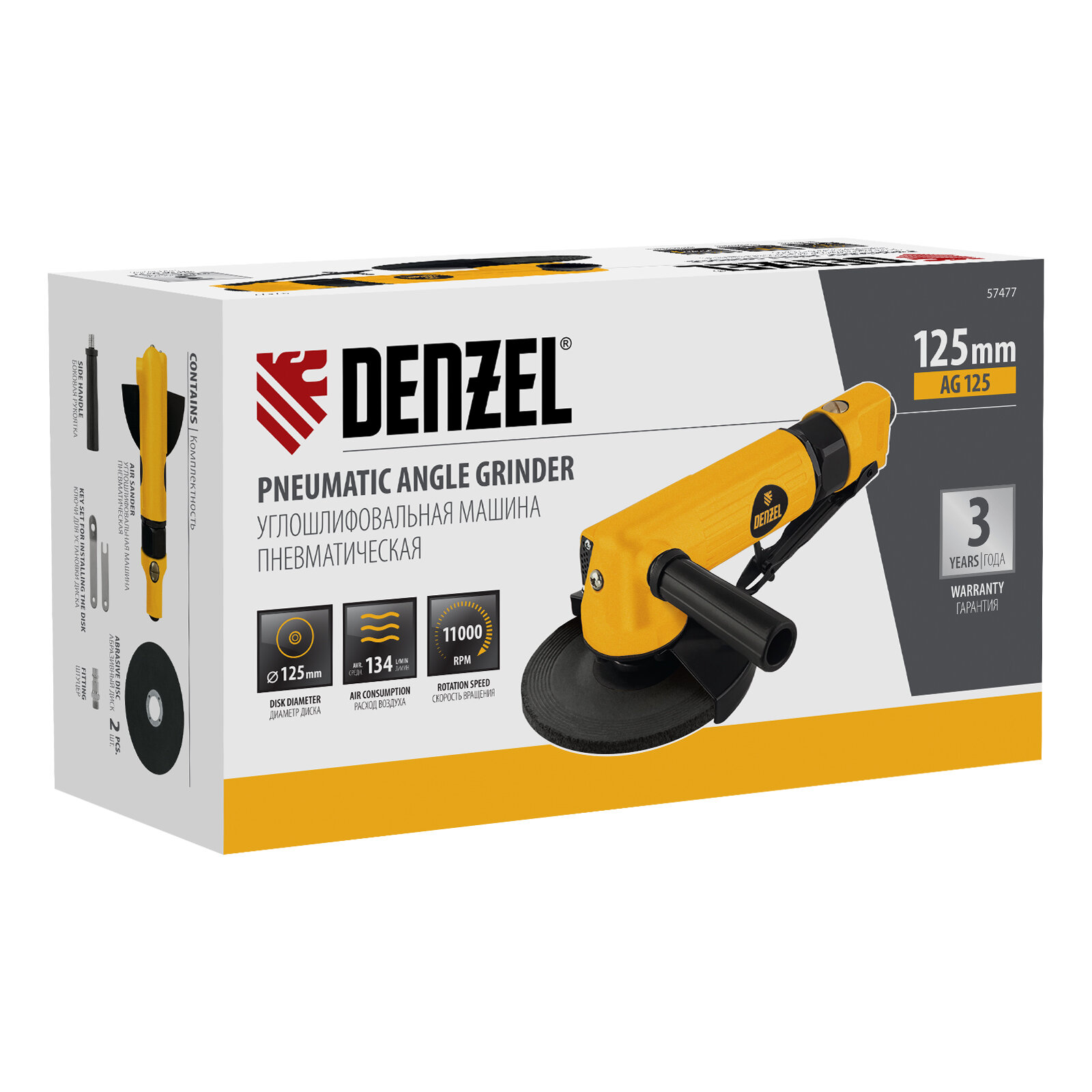 СохранитьDenzel : 57477 Пневматическая углошлифовальная машина AG125, 11000 об/мин, 125 мм, 186 л/мин// интересное: