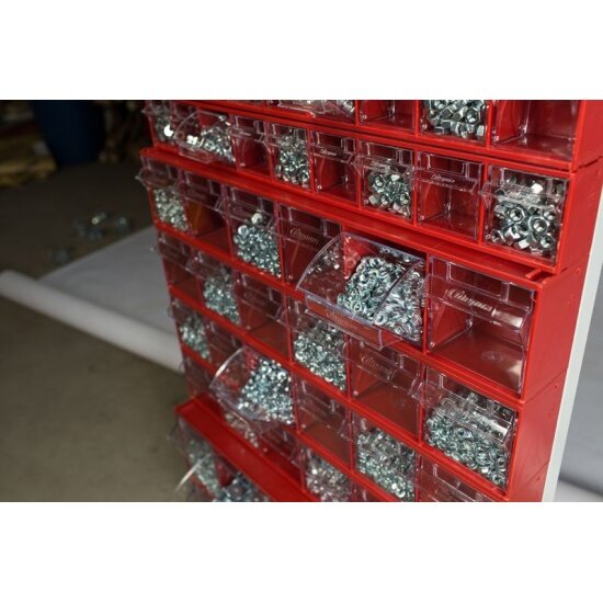 | Плюсы: | удобно хранить различные болты и гайки. есть возможность крепления к стене либо соединения между собой нескольких органайзеров. |