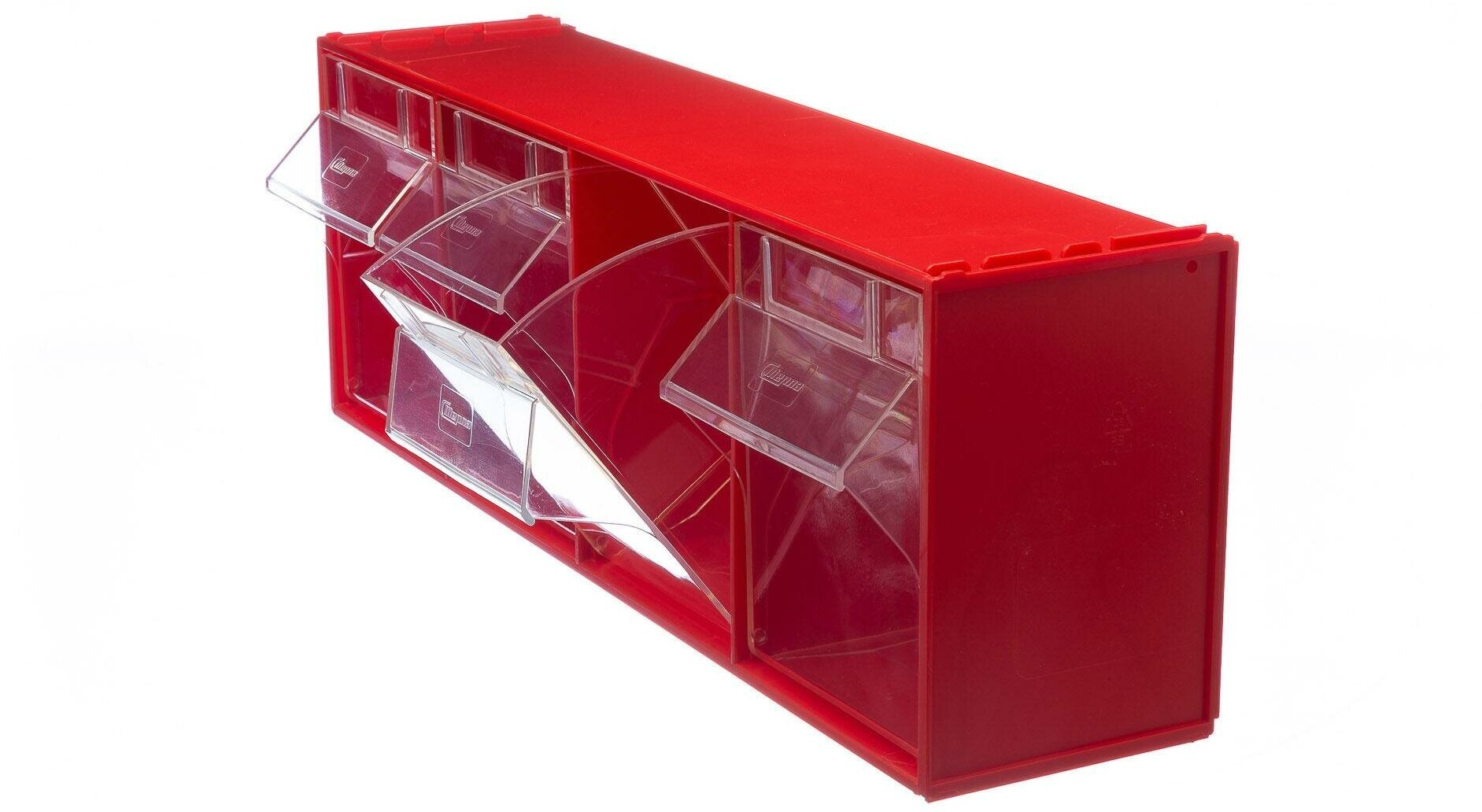 Короб откидной Стелла-техник F-600-4 , 600х178х206мм, 4 ячейки, красный, прозрачный