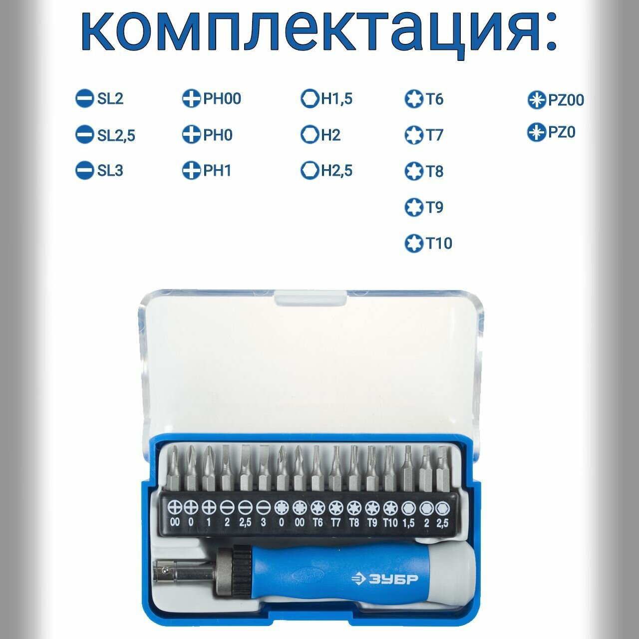 ЗУБР Т-17 реверсивная отвертка для точных работ в наборе с битами 17 предм., 25626-Н17 (25626-H17_z01)
