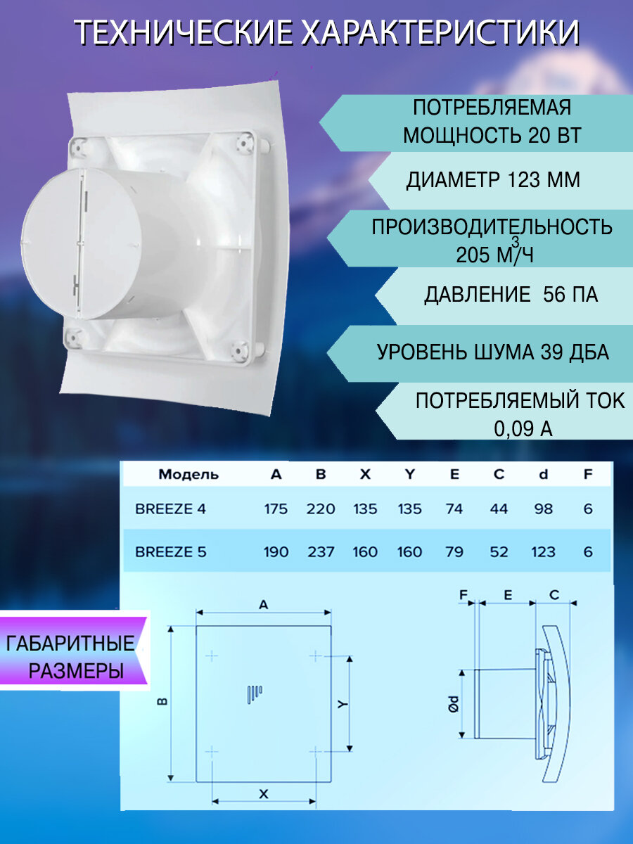 Вытяжной вентилятор 125 с обратным клапаном BREEZE 5C TURBO