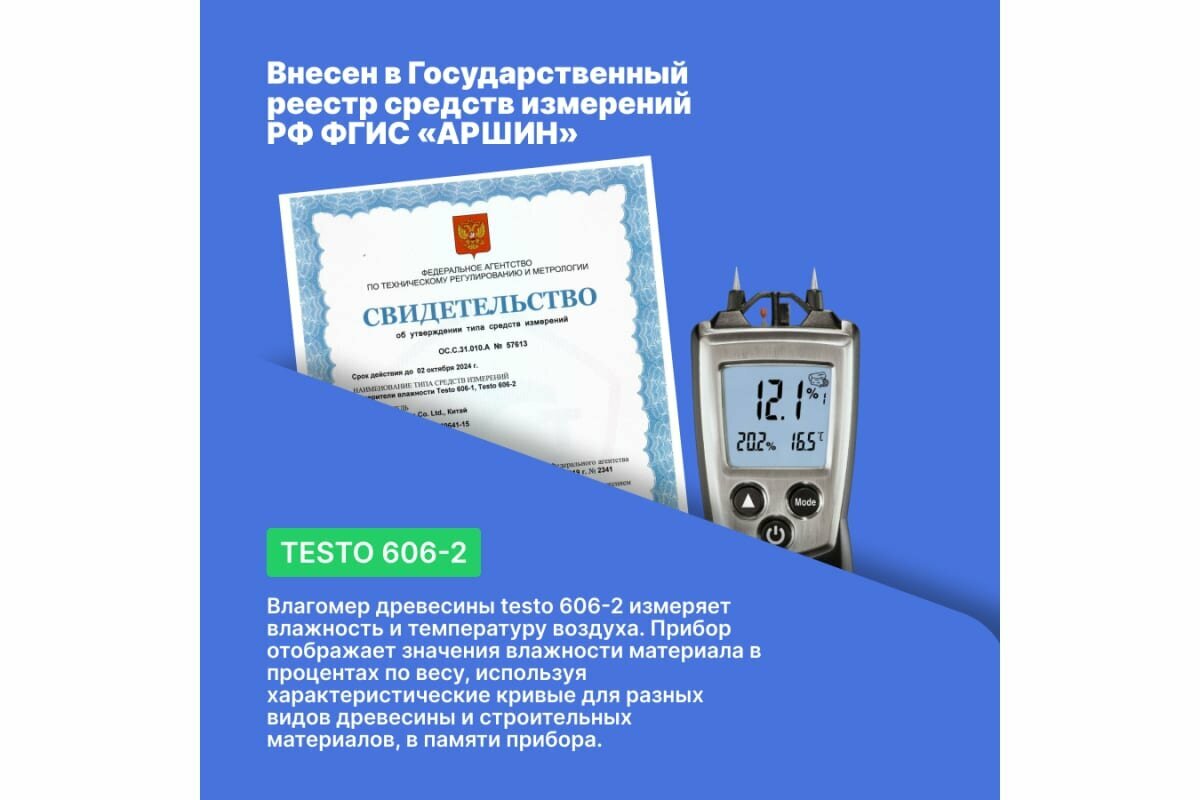 Влагомер древесины и стройматериалов карманный testo 606-2, датчик температуры