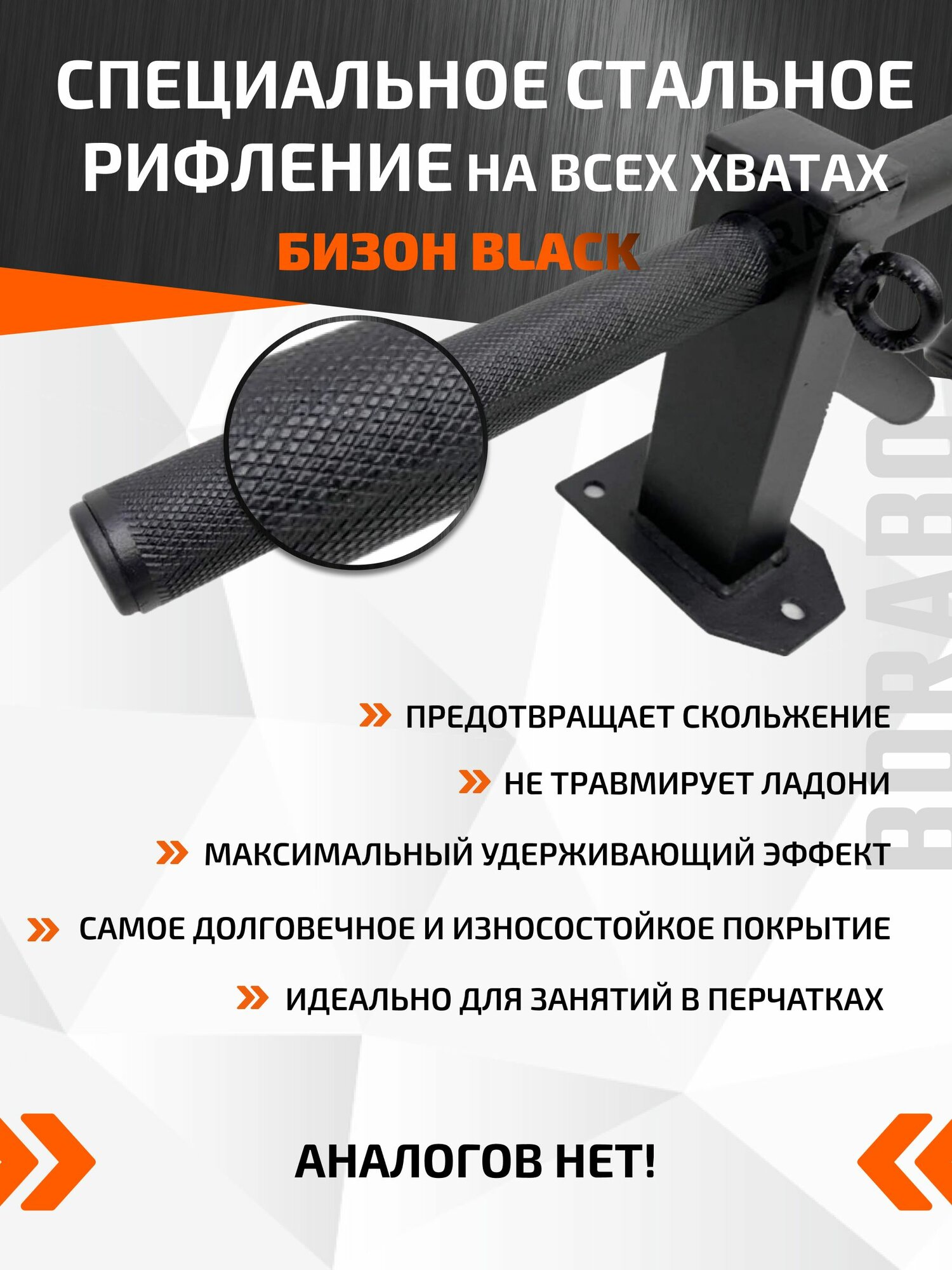 Турник наддверный "Бизон"BLACK - стальное рифление интересное:
