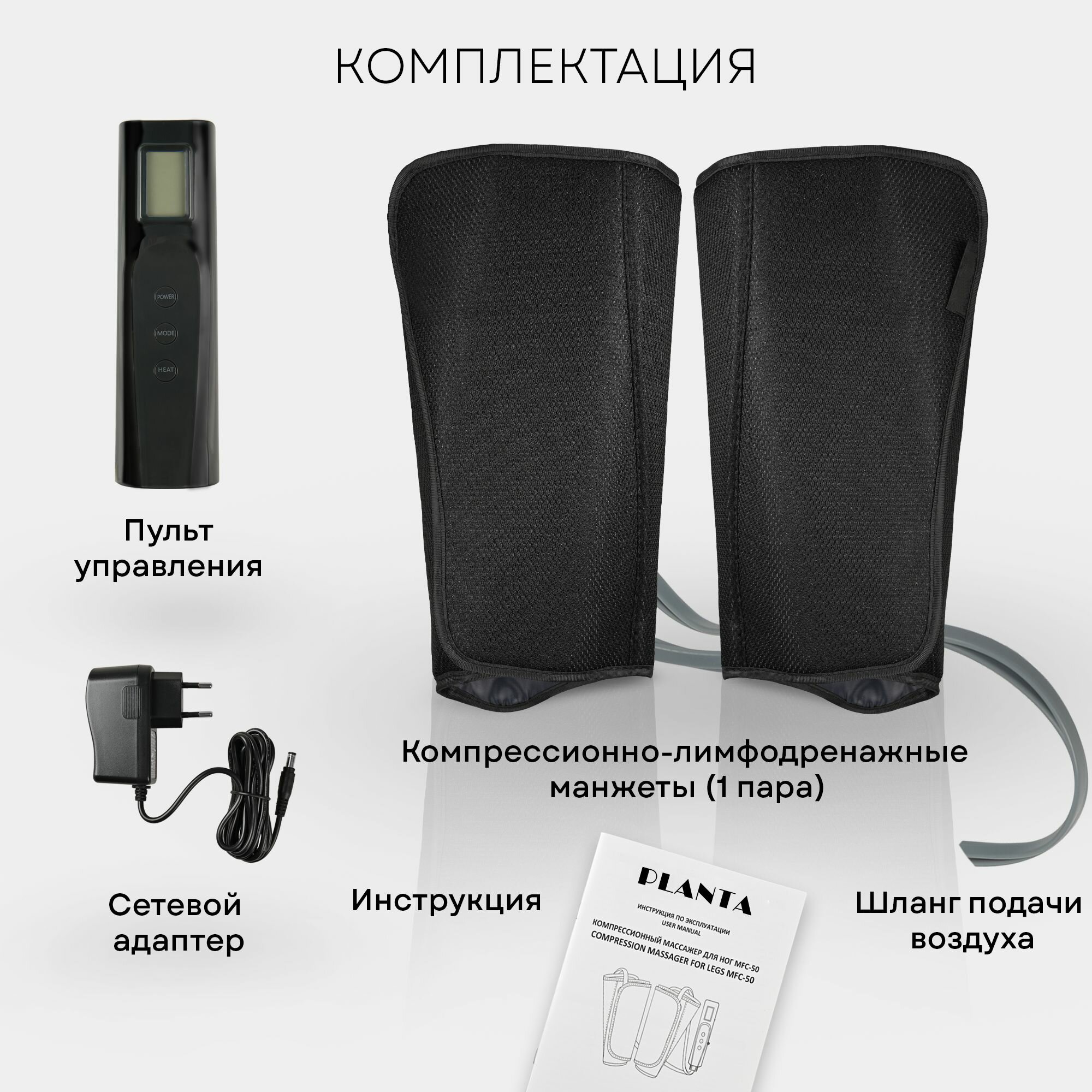 PLANTA Компрессионный массажер для ног, стоп, икр и рук MFC-50, 3 режима, 3 степени интенсивности, подогрев
