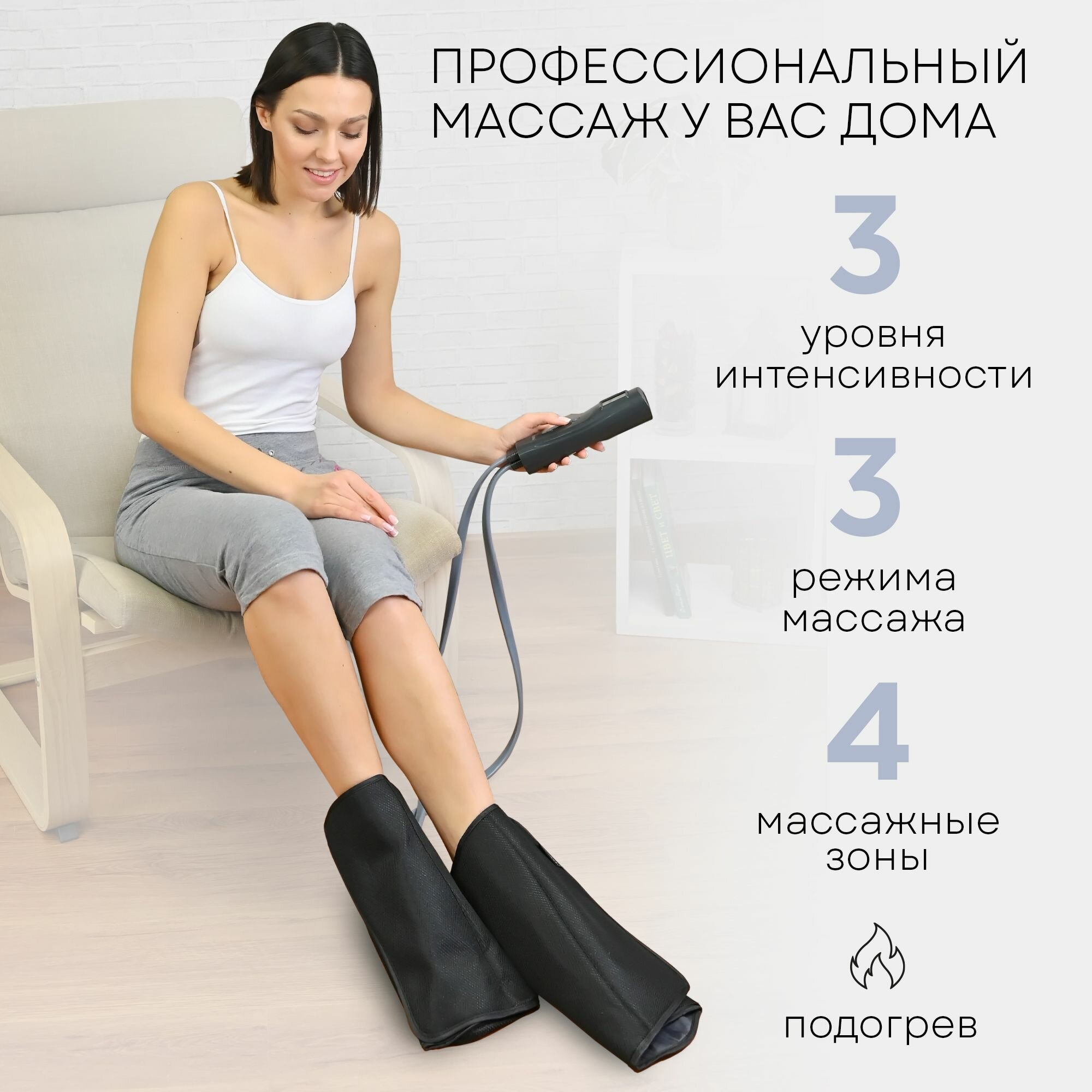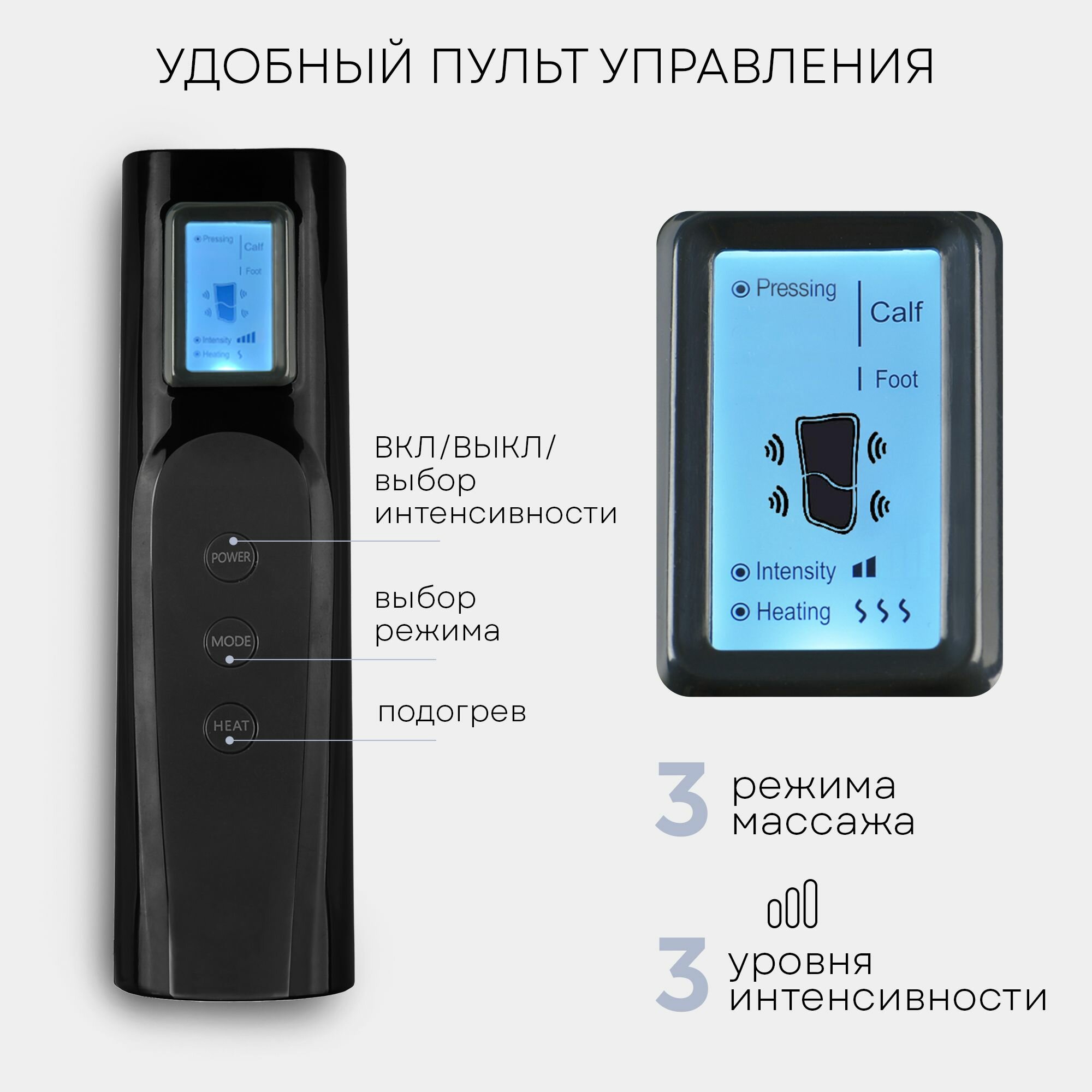Компрессионный массажер для ног, стоп, икр и рук MFC-50, 3 режима, 3 степени интенсивности, подогрев