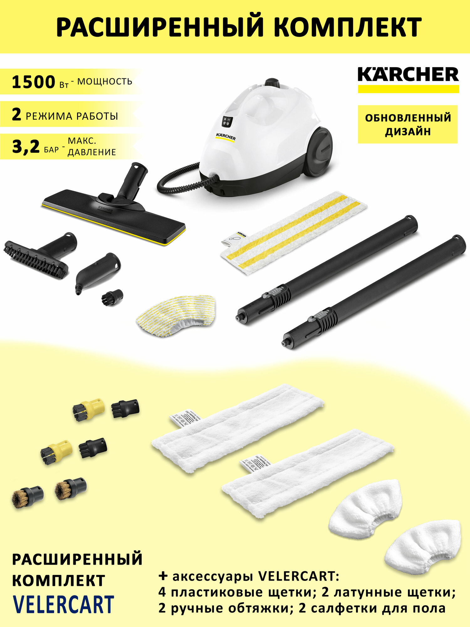 Пароочиститель для дома Karcher SC 2 EasyFix, белый + аксессуары VELERCART в комплектации Ultimate