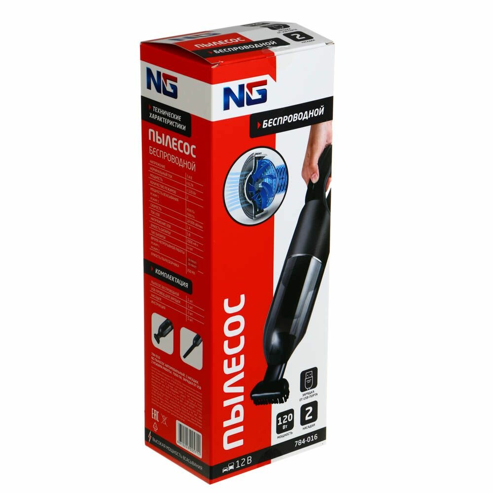 NG Пылесос автомобильный 150Вт, 3 насадки, 3800Pa, серый