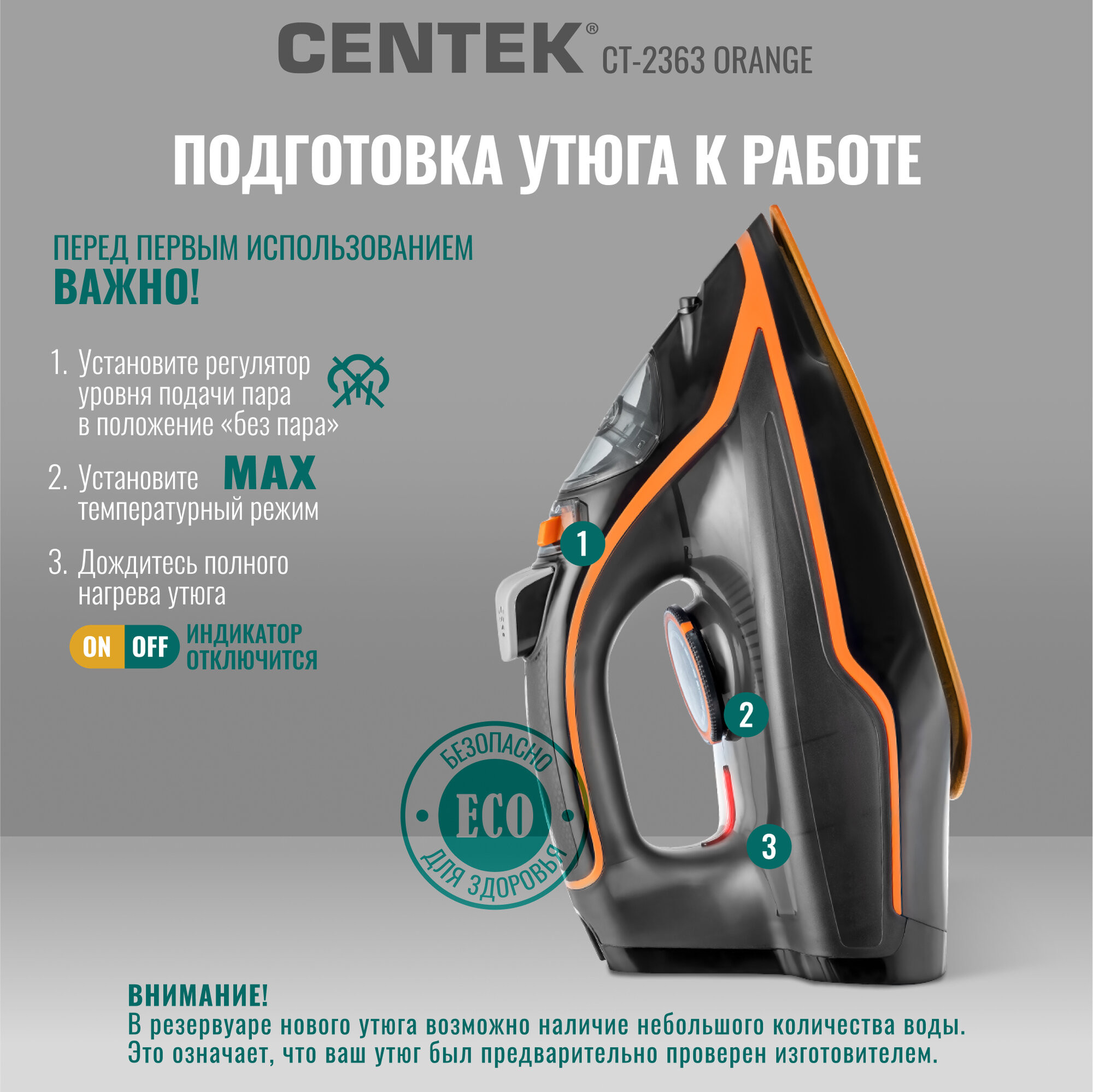 Ниже Вы можете прочитать отзывы на Утюг CENTEK CT-2363 Orange/ 2200Вт/ 300мл/ керамическая подошва/ самоочистка/ функция капля-стоп, ознакомится с подробными характеристиками, посмотреть интересные обзоры и фотографии на Утюг CENTEK CT-2363 Orange/ 2200Вт/ 300мл/ керамическая подошва/ самоочистка/ функция капля-стоп.