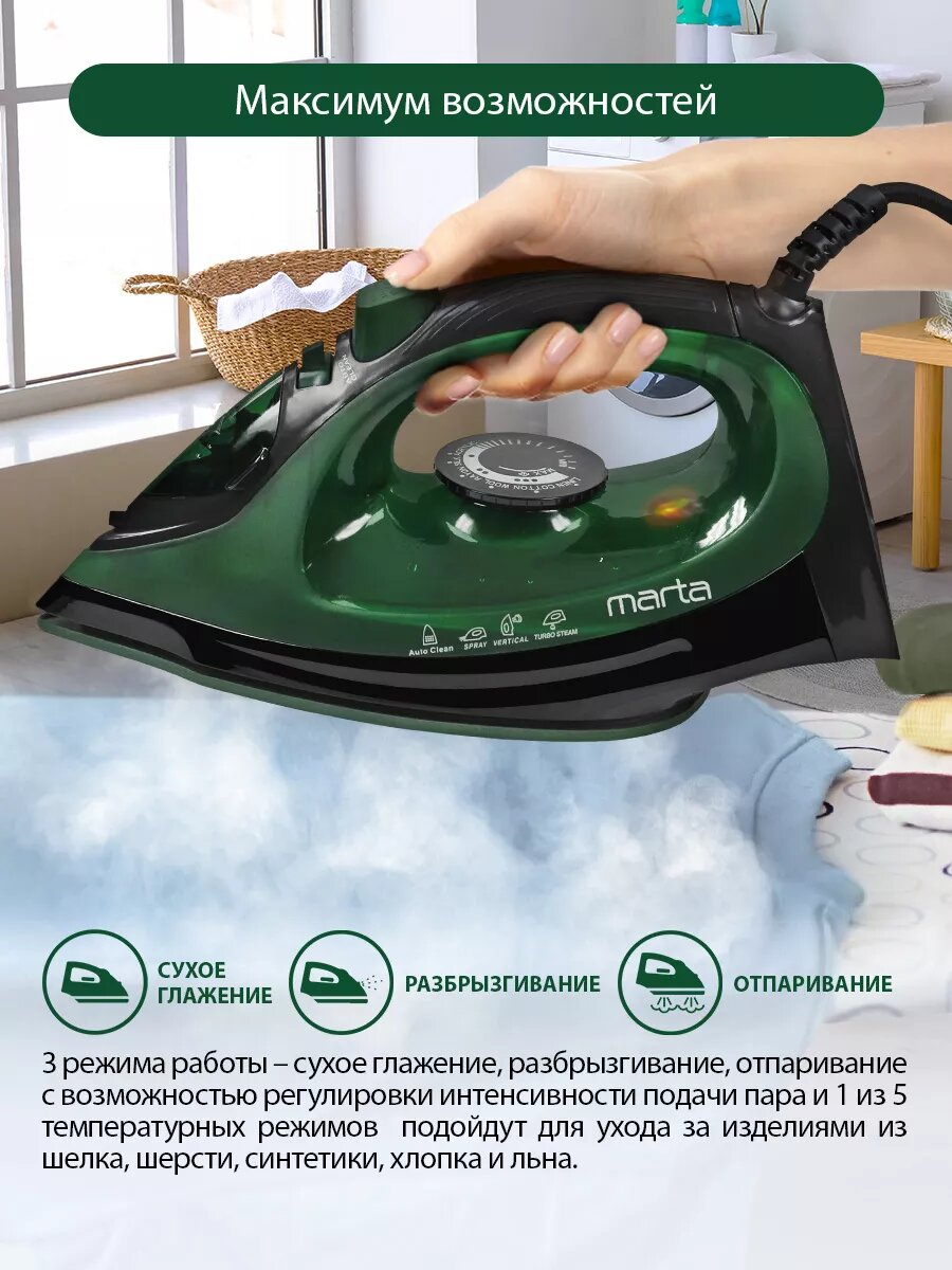 Утюг Marta, с тефлоновым покрытием, отпаривание, мощность 2600 Вт