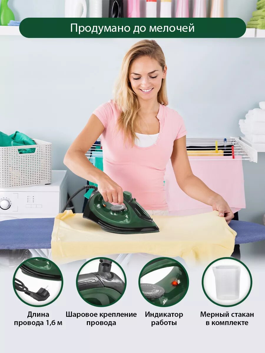 | Минусы: | Простенький,неочевидный указатель на режимы глажки. |