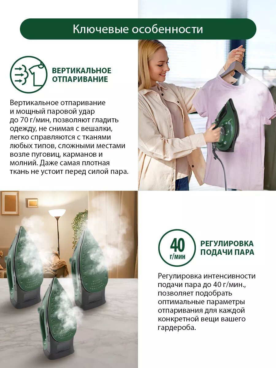 | Дополнительные функции | паровой удар / постоянная подача пара / система самоочистки / сухая глажка / функция разбрызгивания / регулировка подачи пара |