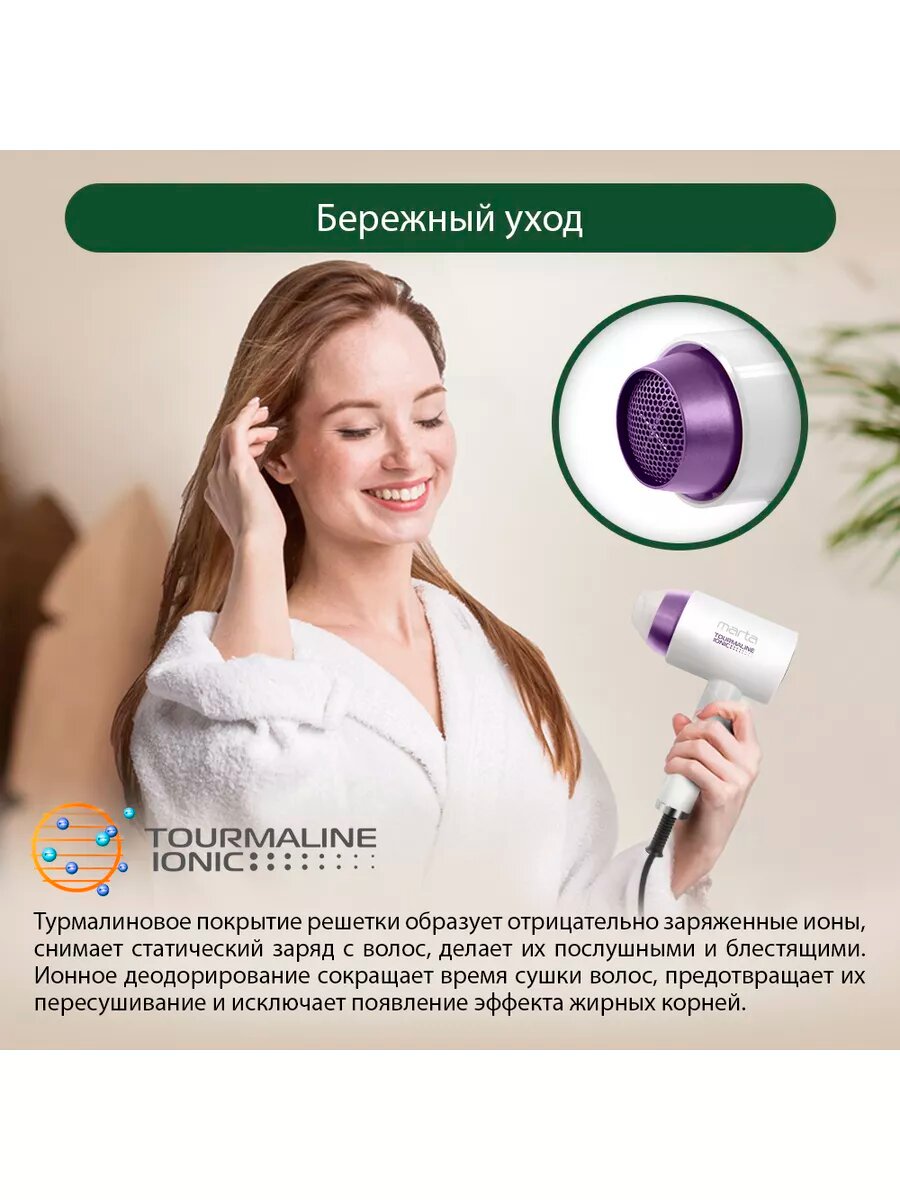 Фен MARTA MT-HD1403A Технология tourmaline ionic светлый чароит