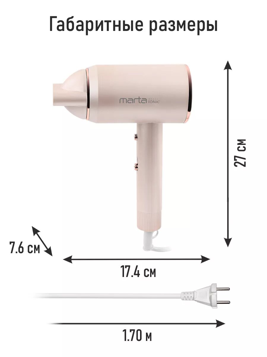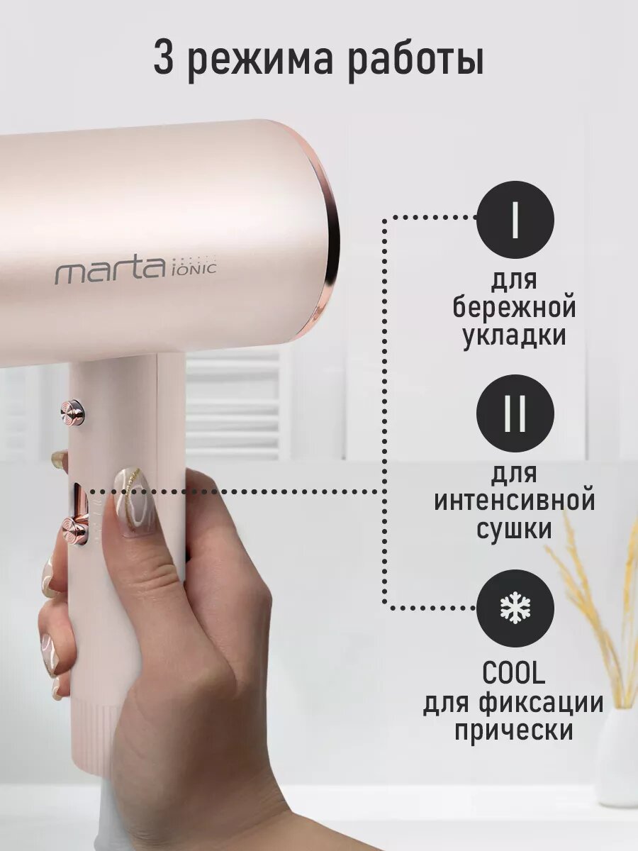 Фен MARTA MT-HD1403A Технология tourmaline ionic белый коралл