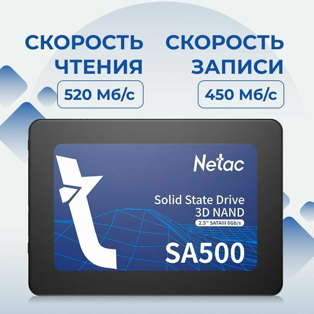 Накопитель SSD 2.5" Netac SA500 256GB Sata-iii TLC (nt01sa500-256-s3x) Nt01sa500-256-s3x