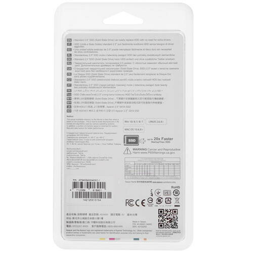 Твердотельный накопитель Apacer SSD PANTHER AS340X 240Gb SATA 2.5" 7mm, R550/W520 Mb/s, 3D NAND, IOPS 38K/75K, MTBF 1,5M, 140TBW, Retail, 3 years (AP240GAS340XC-1)