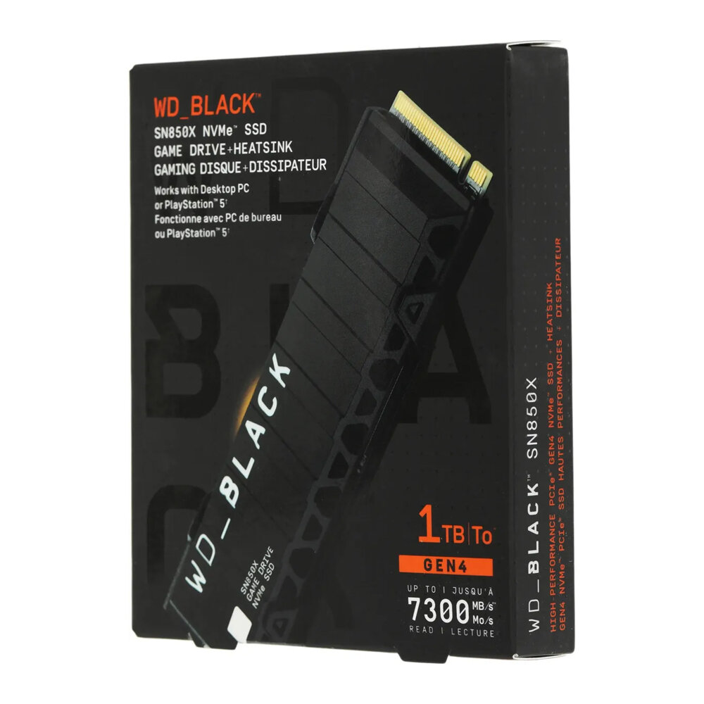 Western Digital накопитель WD SSD Black SN850X, 1.0TB, M.2(22x80mm),WDS100T2XHE NVMe, PCIe 4.0 x4, 3D TLC, R/W 7300/6300MB/s, IOPs 800 000/1 100 000, TBW 600, DWPD 0.3, with Heat Spreader (12 мес.)