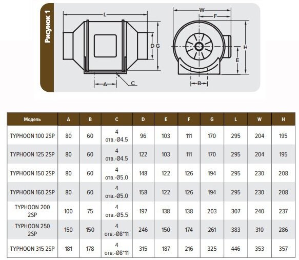 Канальный осевой вентилятор, серия TYPHOON, две скорости, D160