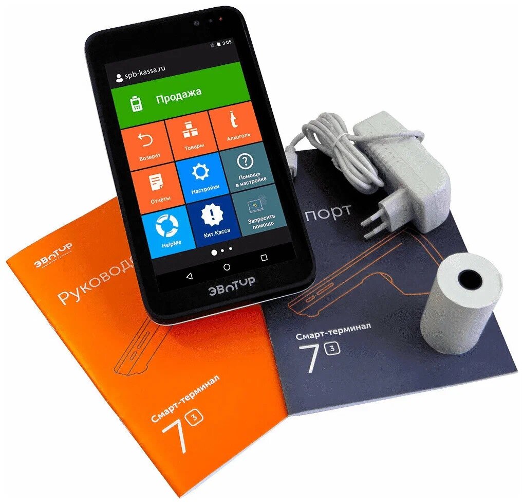 | Комплектация | - смарт-терминал Эвотор 7.3; - адаптер питания; - руководство пользователя; - паспорт кассового аппарата; - чековая лента. |