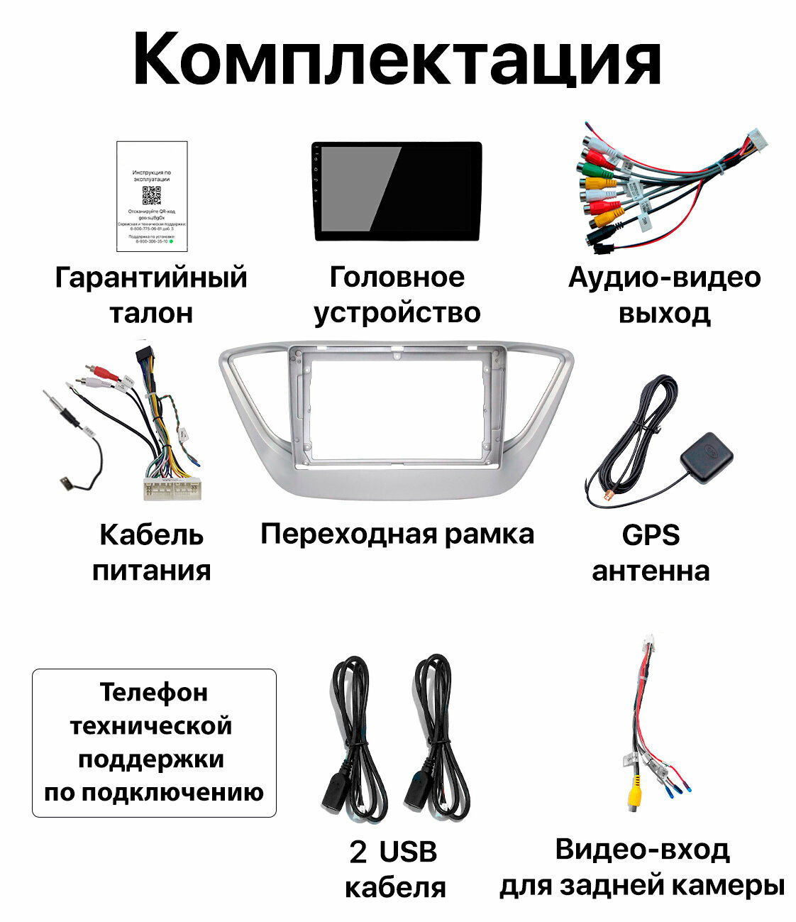 | Подробная комплектация | Комплектация: - Автомагнитола - Переходная рамка - Переходники для подключения к автомобилю - 4 линейных выходов + 1 выдох сабвуфер - 2 тюльпана AUX - Тюльпан для камеры заднего вида - Тюльпан для камеры переднего вида - 2 USB - GPS антенна - Инструкция (Книжка) - Телефон поддержки по установке |