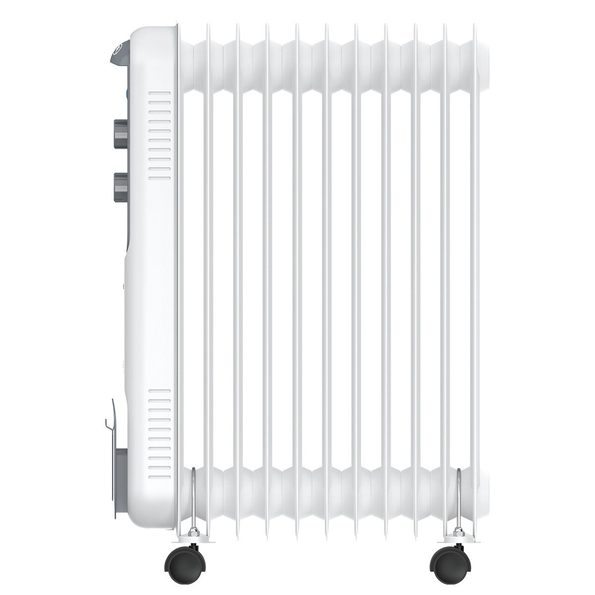 Дополнительно включали зимой масляный радиатор, он на шасси и с прочной ручкой. Переключать режимы мощности и устанавливать температуру удобно, сбоку находится панель управления. Все секции овальной формы и хорошо прогреваются, теплоотдача от них эффективная, но без перегрева. Шнур удобно хранить, для него есть система.