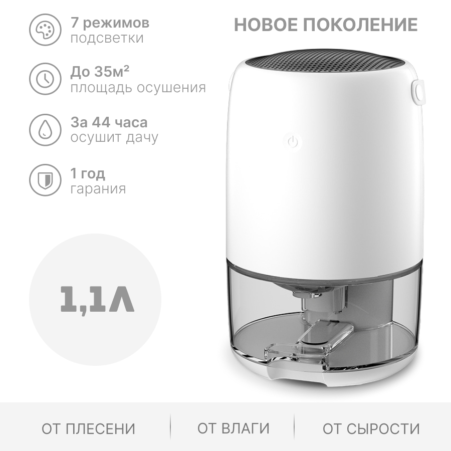 | Отзыв: | отличное устройство, брала для ванной комнаты, собирает большое количество воды за ночь. Тихое, приятной подсветкой |
