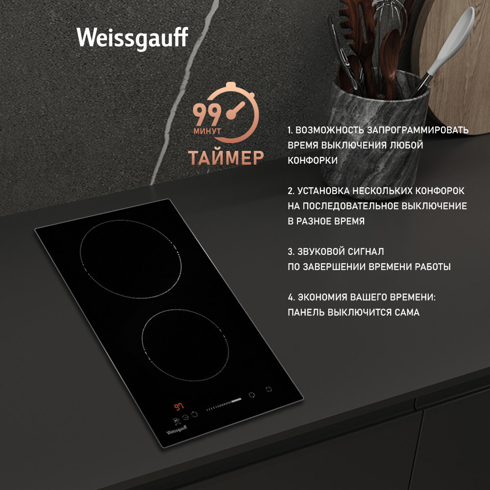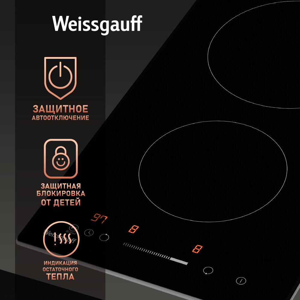 Стеклокерамическая панель Weissgauff HV 32 B сенсорное управление, 3 года гарантии, Сенсорное управление, Мощность 3000 Вт, Таймер, Индикация остаточного тепла, Защитное автоотключение, 30 см ширина интересное: